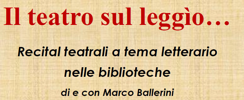 Un pensiero riguardo “Marco Ballerini, IL TEATRO SUL LEGGIO, recital teatrali a tema letterario nelle biblioteche, maggio e giugno 2014