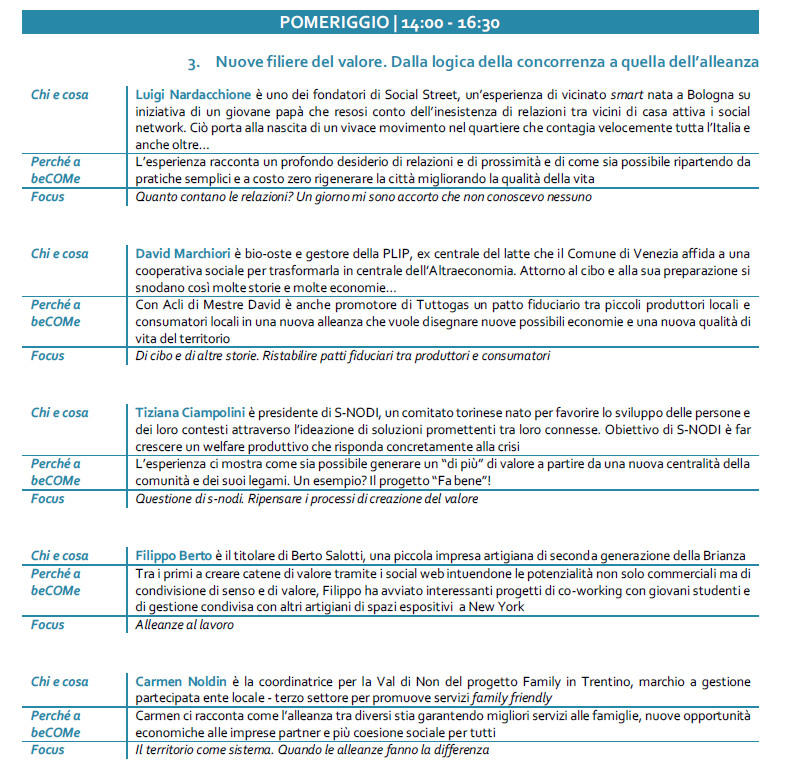 – il momento dell’esemplificazione, attraverso l’ascolto delle buone prassi, protagonista nella giornata di sabato;