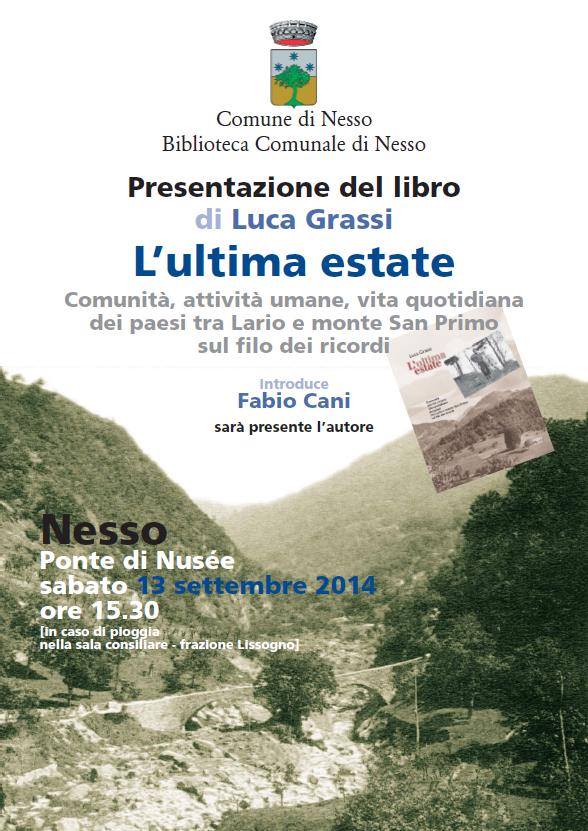 Libri su Como e il Lario · Nodo Libri · Storia e Economia presentazione del libro L’ULTIMA ESTATE di Luca Grassi, Nodolibri edizioni, introduce Fabio Cani, Nesso, al ponte di Nusèe, 13 settembre 2014, 15,30 11 settembre 201415 dicembre 2024 Paolo Ferrario Una splendida giornata ha accompagnato, sabato scorso a Nesso (Ponte di Nusée), la presentazione del libro di Luca Grassi “L’ultima estate. Comunità, attività umane, vita quotidiana dei paesi tra Lario e monte San Primo sul filo dei ricordi” [http://www.nodolibrieditore.it/scheda-libro/luca-grassi/lultima-estate-9788871852-158429.html]. Condividi su: Fai clic per condividere su Facebook (Si apre in una nuova finestra) Facebook Fai clic qui per condividere su LinkedIn (Si apre in una nuova finestra) LinkedIn Fai clic per condividere su WhatsApp (Si apre in una nuova finestra) WhatsApp Fai clic qui per condividere su Tumblr (Si apre in una nuova finestra) Tumblr Fai clic per inviare un link a un amico via e-mail (Si apre in una nuova finestra) E-mail Fai clic qui per condividere su Pinterest (Si apre in una nuova finestra) Pinterest Fai clic per condividere su Threads (Si apre in una nuova finestra) Threads Fai clic per condividere su Bluesky (Si apre in una nuova finestra) Bluesky Mi piace Caricamento... Correlati Condividi su: Fai clic per condividere su Facebook (Si apre in una nuova finestra) Facebook Fai clic qui per condividere su LinkedIn (Si apre in una nuova finestra) LinkedIn Fai clic per condividere su WhatsApp (Si apre in una nuova finestra) WhatsApp Fai clic qui per condividere su Tumblr (Si apre in una nuova finestra) Tumblr Fai clic per inviare un link a un amico via e-mail (Si apre in una nuova finestra) E-mail Fai clic qui per condividere su Pinterest (Si apre in una nuova finestra) Pinterest Fai clic per condividere su Threads (Si apre in una nuova finestra) Threads Fai clic per condividere su Bluesky (Si apre in una nuova finestra) Bluesky Mi piace Caricamento...