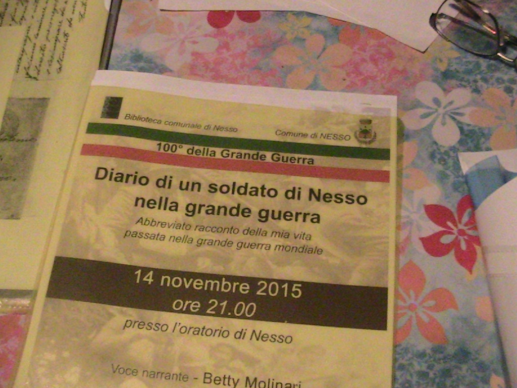 DIARIO DI UN SOLDATO NELLA GRANDE GUERRA: “abbreviato racconto della mia vita passata nella grande guerra mondiale”, voce narrante di BETTY MOLINARI , nella piazzetta del pontile dei battelli, frazione di Coatesa (nel Comune di Nesso), 11 agosto 2016. #lagodicomo