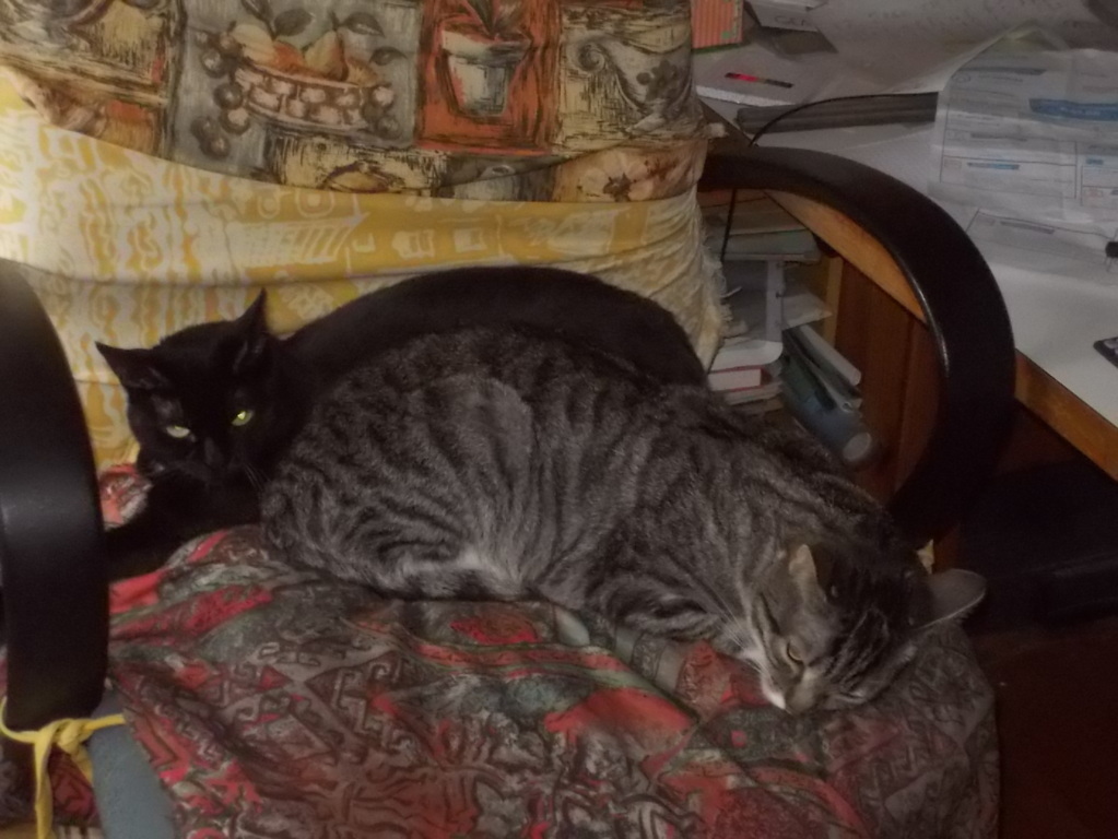 uno dei riposi quotidiani dei gatti Gin e Noirette, 19 maggio 2023