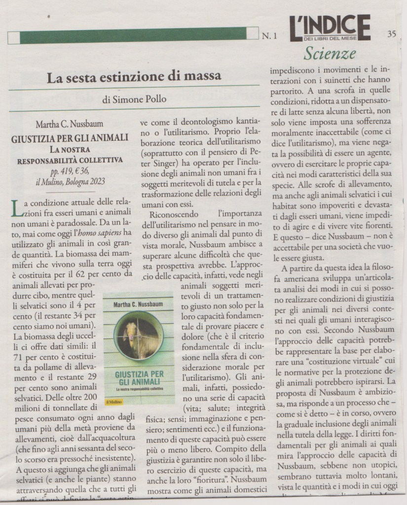 - L’approccio delle capacità come fondamento della giustizia per gli animali.