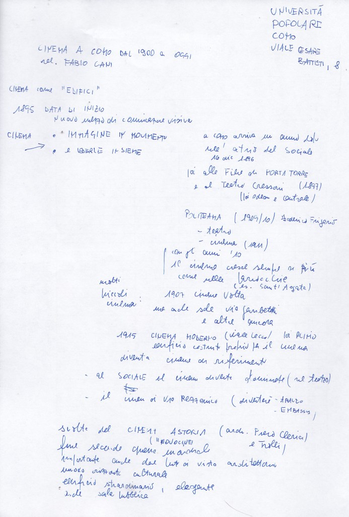 Un pensiero riguardo “I cinema di Como dal ‘900 ad oggi, lezione di Fabio Cani, Università popolare, 28 aprile 2026. Appunti