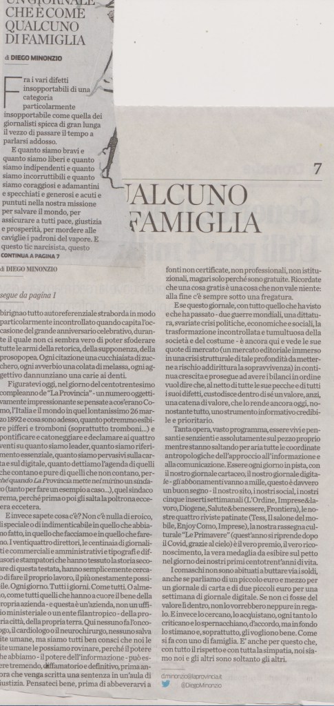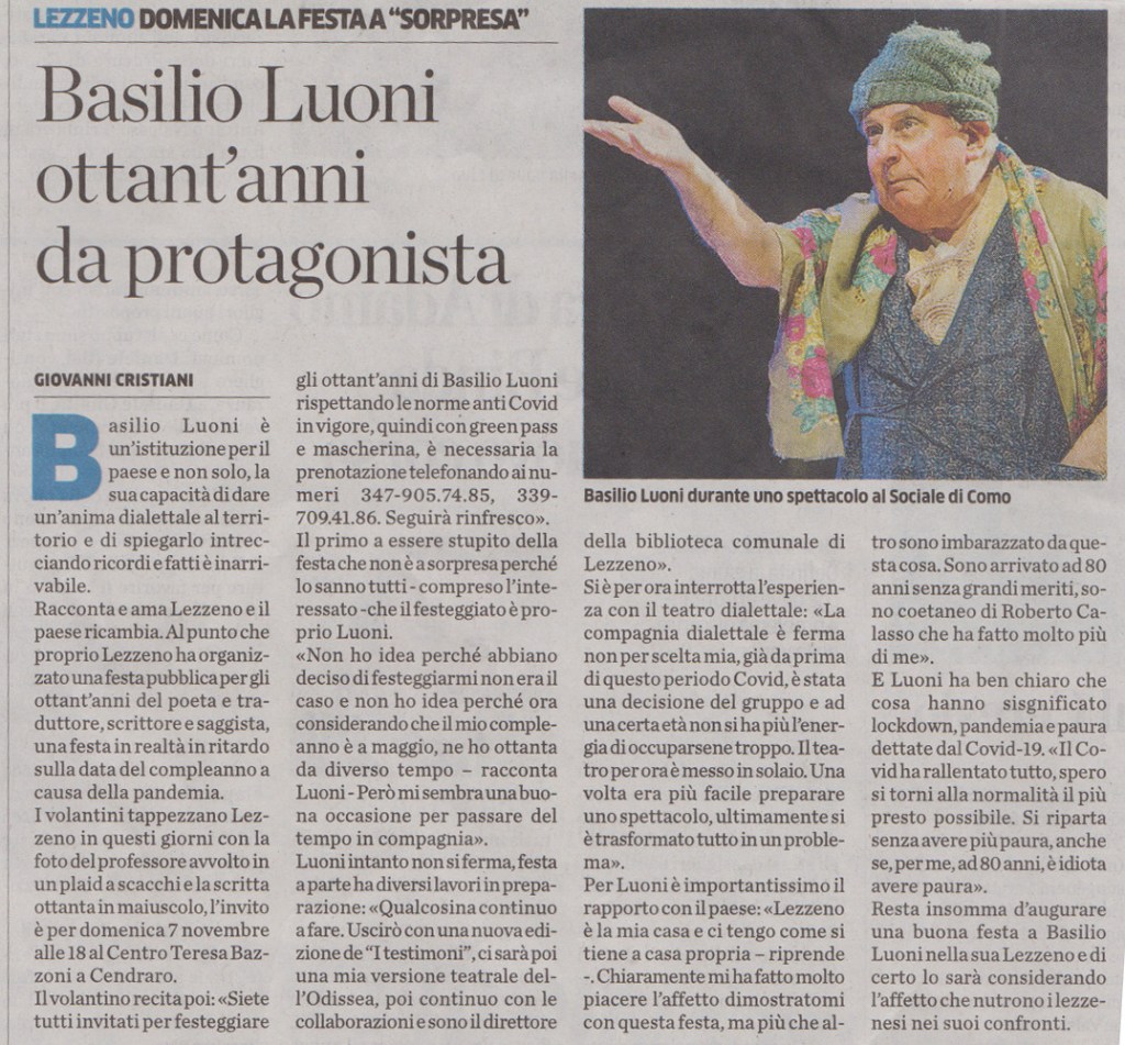 In questa sera d’autunno, quando l’umidità si addensa sulla superficie del lago, presentiamo un recente testo di Basilio Luoni, noto affabulatore lariano, a noi caro per la sua passione per il dialetto antico che riesce a rendere attuale e moderno.