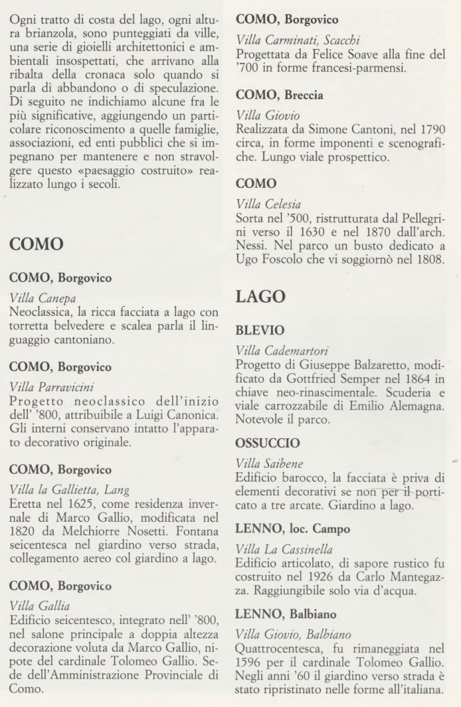 * BALBIANI A., (1977), COMO il suo lago,le sue valli e le sue ville, FORNI