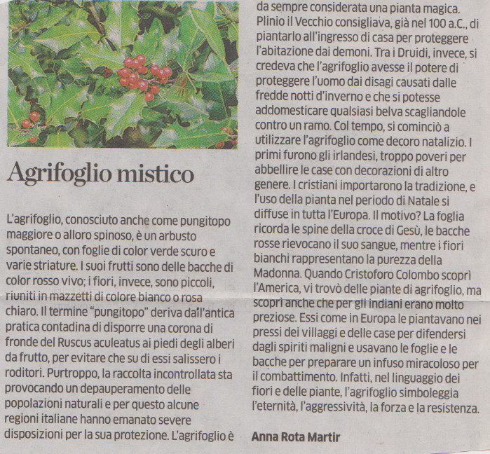 l’ AGRIFOGLIO, articolo di Anna Rota Martir, in La Provincia