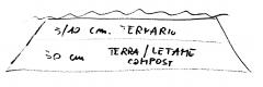 Ogni proda avrà 5 /10 cm di terra morbida con dentro il concime ternario e 30 cm di terra letamata.