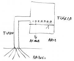 Arriva l’acqua. Una parte si ferma sul tavolo. Una parte deve uscire sotto forma di vapore. La foglia traspira e rinfresca la foglia